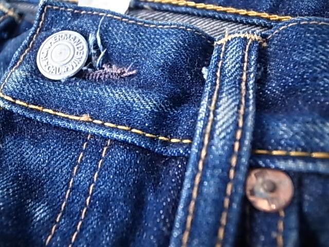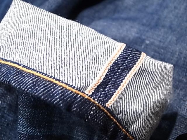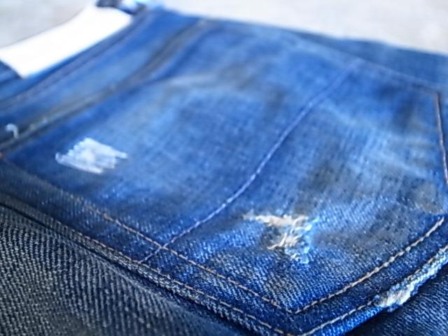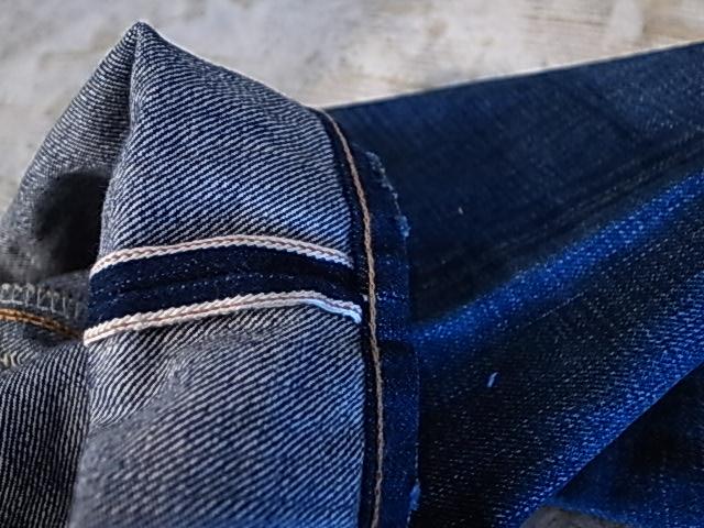 日本製デニム生地。 古い織り機で作成された最高級な素材。 これらの生地を使用する事により、彼の求める色だし(色落ち)、フォルム、ダメージが実現できる。